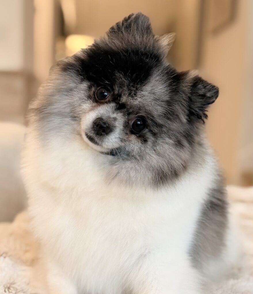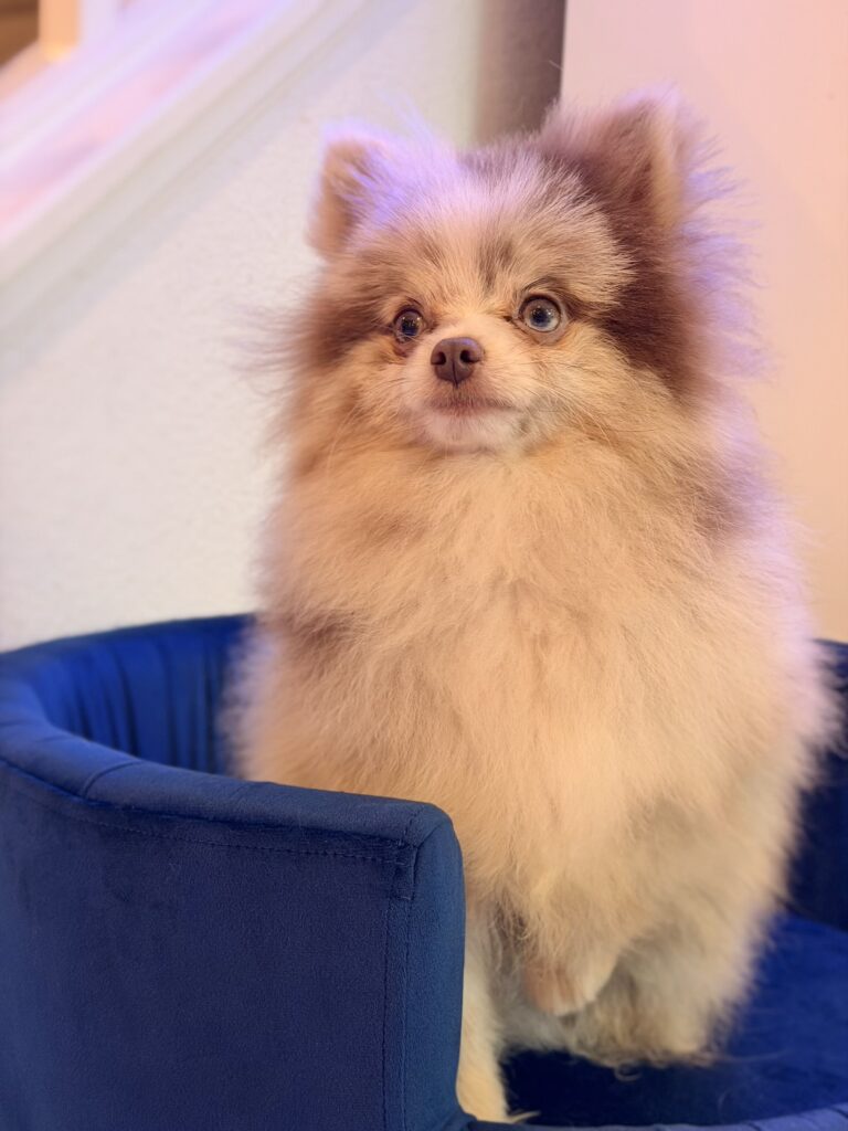Latte is our upcoming Lavender Merle stud! He weighs only 4.5 pounds, but don’t tell him that—he’s convinced he’s a big boy. We can’t wait to see the beautiful puppies he’ll produce in the future.
